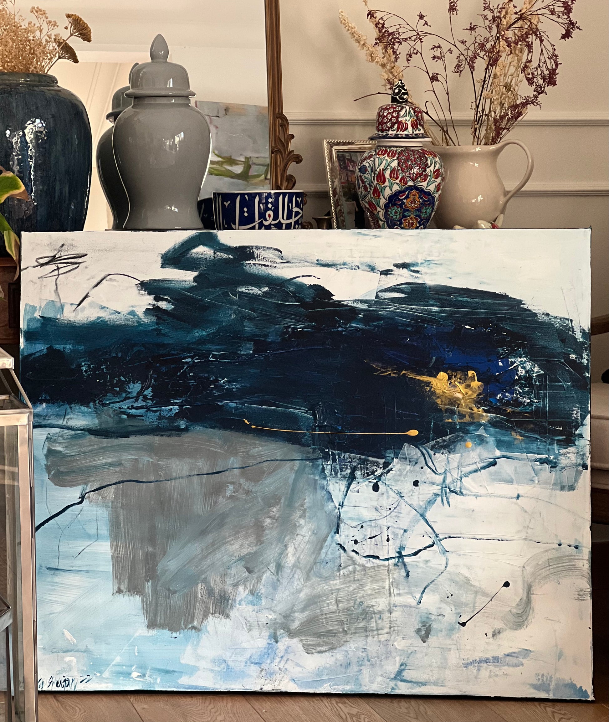 For international orders outside the United Arab Emirates, artworks will be shipped as rolled canvases for safe and secure delivery. Within the UAE, paintings will be delivered as stretched canvases, ready to hang.